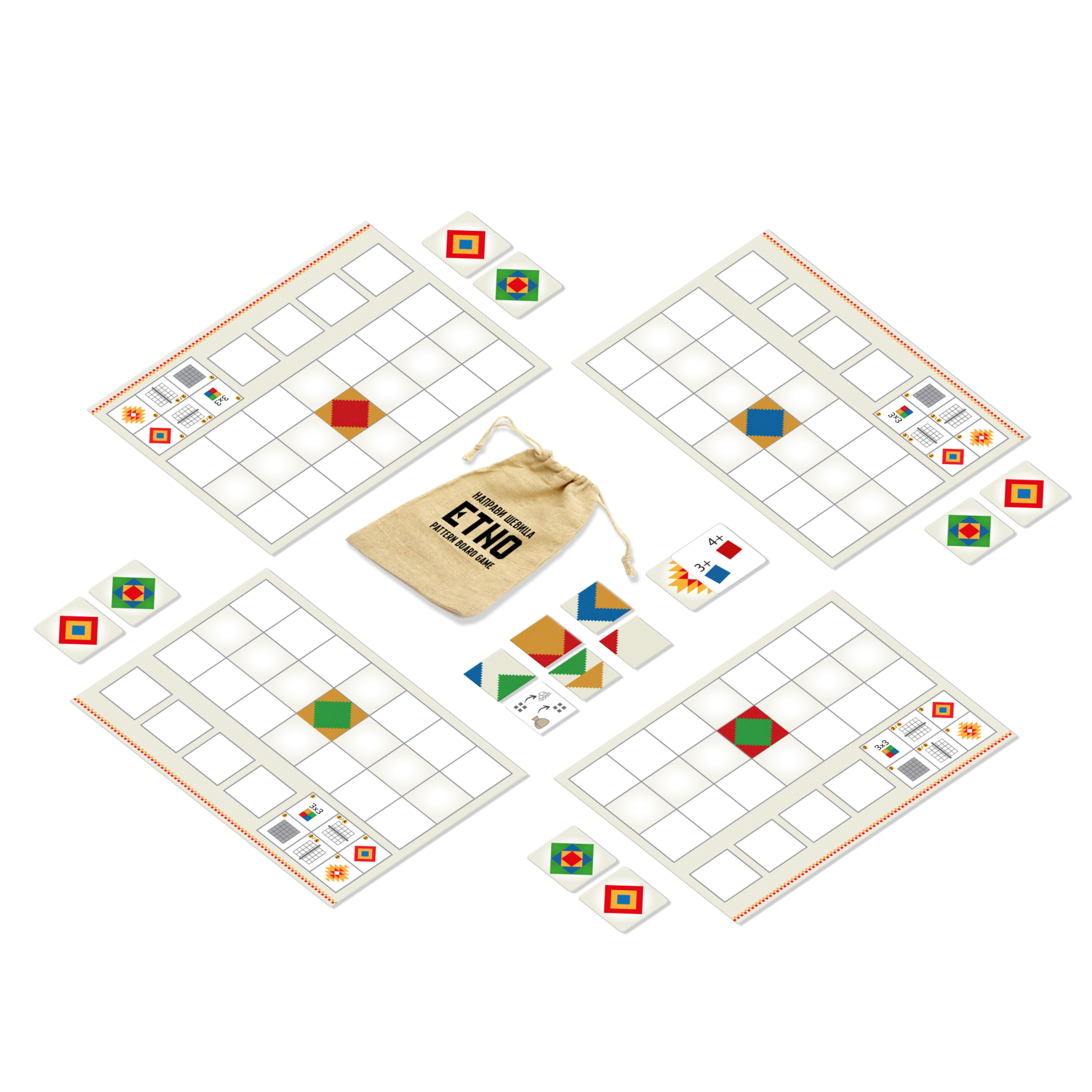Up to 4 players collect and place tiles in this board game inspired by Bulgarian embroidery and ancient symbols. Create patterns and become the winner thanks to good planning, creativity and spatial thinking.
